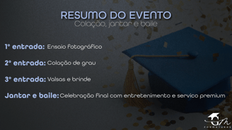 Cerimônia Completa de Colação de Grau - Sessão de Fotos Family Day - Sessão de Fotos no Polo de Apoio - Traje para os Formandos - Convites Especiais - Espaço Instagramável - Jantar e Baile